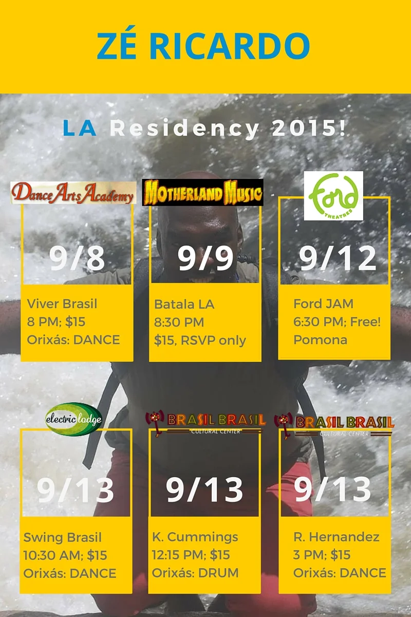 Master Drummer and Dancer Zé Ricardo of the Balé Folclorico da Bahia is here in Los Angeles! Viver Brasil Institute and Founding VB Directors, Linda Yudin and Luiz Badaró are thrilled to host master dancer and percussionist, José Ricardo Sousa and offer you SEVERAL opportunities to experience his magic. Aproveite!