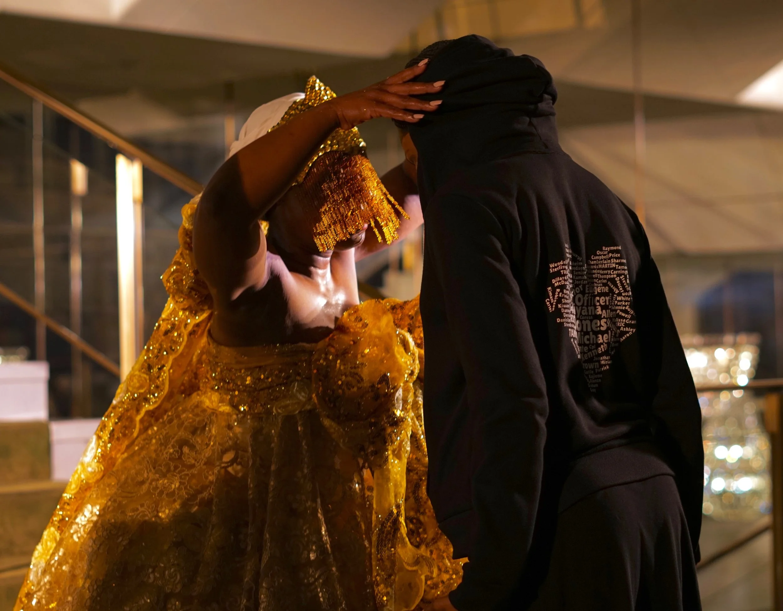 In this timely mythical narrative, the three all-powerful wives of Xangô step beyond the archetype:Oia- Iansã, warrior goddess of the winds and ancestral world who is able to sever the lifeline; Oxum, queen of the sweet waters, protector of children, beauty and the essence of self-love; and Oba, robust hunter goddess of the earth, symbol of renewal and independence, remove their crowns and test their powers as mothers and activists responding to the issue of senseless dying of black and brown youth. What of a goddess’s fragility? Where does her strength live? And what of the divine queens, Nanã, who cares for the fallen spirits, and Iemanja, the ever present mother nurturer? The vitality of ancient wisdom is revealed in this story of strength, truth, courage and humanity.
